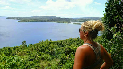 No mutta, on täällä kuitenkin jotain mitä tehdäkkin. Päätimme lähteä vuoren valloitukseen ja kyselimme reittiä paikallisilta ja saimmekin aina ohjeita. Meiltä myös aina kysyttiin että kaksinko meinataan mennä. mm. Kysyessämme reittiä paikalliseta naiselta hän ilmoitti miehensä lähtevän meille oppaaksi (täällä ei naiset ilmeisesti miehiltänsä kysele, vaan käskee), ilmoitimme kuitenkin että yritämme kaksin ja saimme taas ohjeet. Pitkän taivaltamisen jälkeen selvisikin että eihän se niin helppoa ole löytää oikeaa tietä. Kysyimme reittiä aina kun vain jonkun näimme, mutta näillä kulmilla kadut voi joskus olla todella tyhjiä. Onneksi kuitenkin paikallinen Manu (20v) sattui tulemaan pyörällä vastaan. Oli hakemassa banaaneja perheellensä ruuaksi. Kysyimme reittiä, mutta hän sanoi lähtevänsä näyttämään meille polun joka johtaa vuorelle. Polun päähän päästyämme hän päättikin opastaa meidät ihan ylös asti ja hyvä niin. Polku oli välillä vaikea hahmottaa ja monesti niin jyrkkä että käsillekkin löytyi töitä kun neliveto päällä edettiin. Ylös näköalapaikalle päästyämme meitä odotti todella kaunis näkymä. Myöhemmin Manu antoi meille vielä hirmuisen nipun banaaneja ja kutsui kotiinsa tutustumaan. Mekin kutsuttiin hänet veneelle käymään ja se olikin Manun ensikerta olla purjeveneessä. Annoimme hänelle myös veneemme kaksi vanhaa akkua, kalastus tarvikkeita ja muuta pientä. Varsinkin akut tekivät hänet ja ilmeisesti koko perheen onnelliseksi. Heillä nimittäin oli aurinkopaneeli, mutta ei akkuja ja nyt saivat kotiinsa valot. Saarella onkin puutetta aivan kaikesta mahdollisesta.